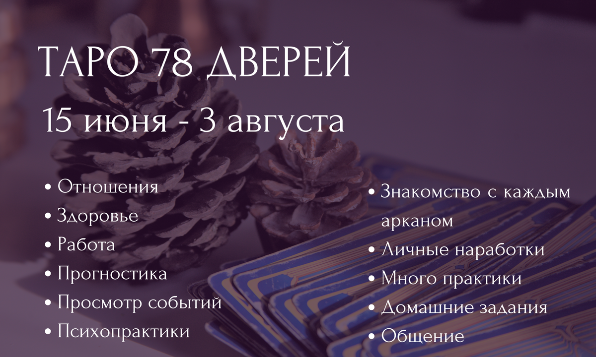 Курсы по работе с картами Таро, работе с домашним пространством, продвижению в сфере эзотерики, родовым практикам, традициям.